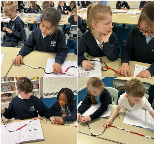 This week in maths, Year 3 continued learning about division using repeated subtraction. In this lesson, the children used bead strings to help them understand how groups of a number can be taken away to solve division problems. They used concrete materials to help divide numbers that are larger than the multiplication facts they already know. The children also learnt how to make their calculations more efficient by subtracting larger groups, such as 10 groups of the divisor at a time instead of one group each time.