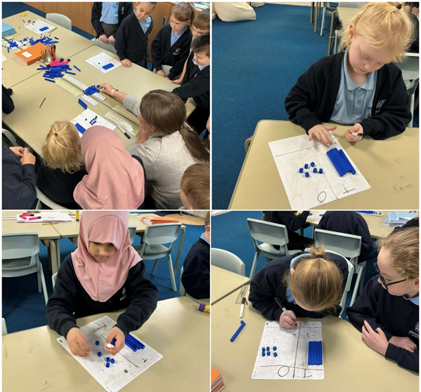 The children were able to show multiplication using arrays, bead strings and number lines to demonstrate how multiplication is repeated addition. They practised counting in equal jumps to help calculate the 3 and 4 times tables. By the end of the lesson, the children were confidently representing multiplication and explaining their thinking.