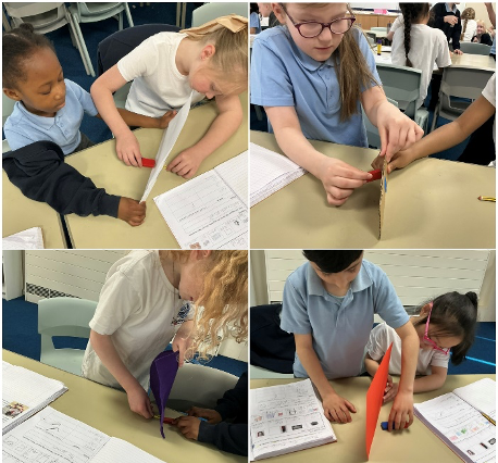 Working in groups, the children thoughtfully discussed their sculptures, explaining the ideas and inspiration behind their designs. They shared the different techniques they used, including twisting, using tabs, concertina folds, slotting and rolling, showing a great understanding of the creative process.