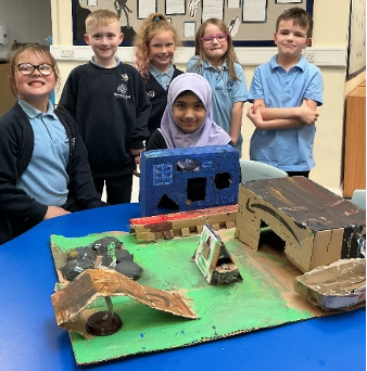 Working in small groups, the children planned and built large scale 3D sculptures using cardboard, card and paper. They experimented with folding, rolling, slotting and tabs. They used different joining materials while problem solving when ideas did not work first time, showing resilience and independence in their learning.
