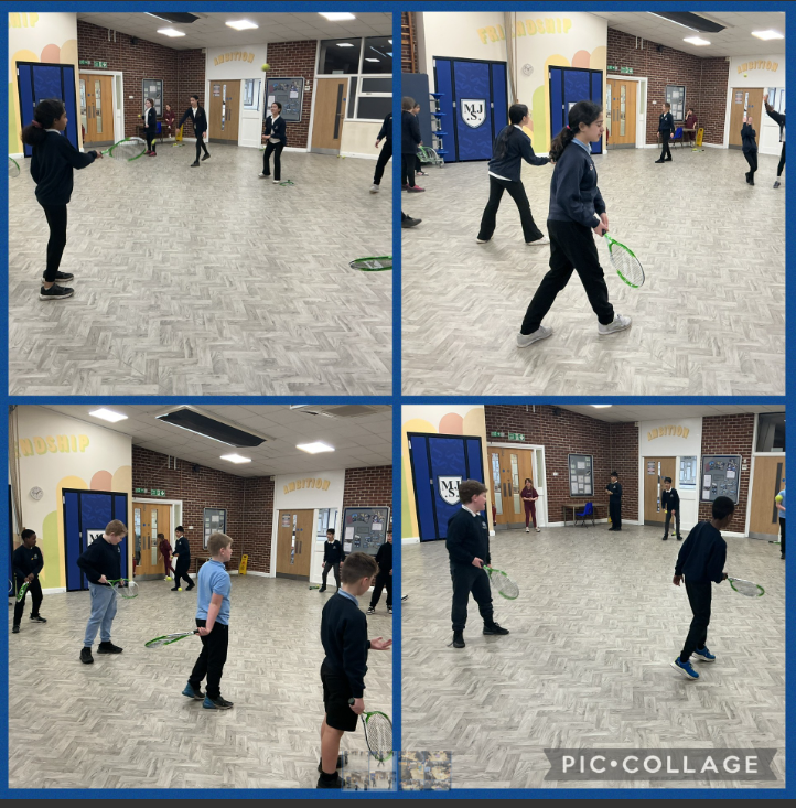 Finally, in P.E. we continued our unit on net and wall games. We started by throwing a ball underarm at various targets and linked this to an underarm shot in tennis. The children realised they didn’t need to apply as much pressure and the end position of the racket should be pointing at the intended target.