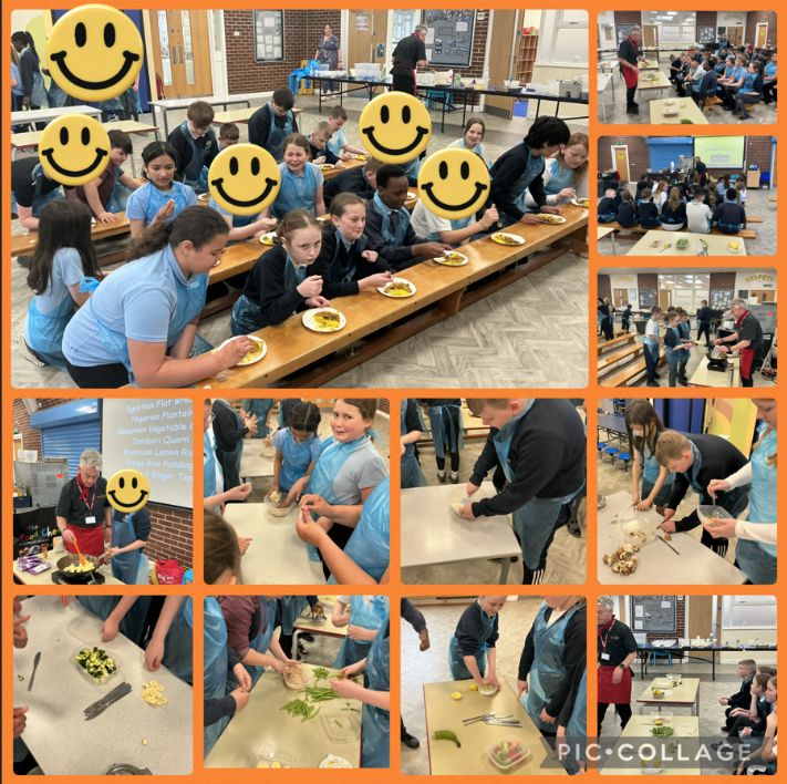On Monday, we had a visit from Pat Oakes (The Fun Food Chef). The children had a fantastic time and made some meals that they hadn’t experienced before. They made a Malaysian curry, a mango rice pudding, flatbreads and washed it down with a ginger and mint tea. What a fantastic experience for all our children!