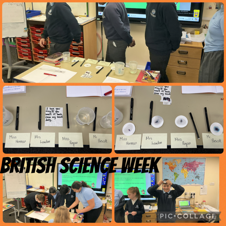 This week has been ‘British Science Week’ and the theme has been curiosity. Each year group were given a focus question to investigate and year 6’s was, ‘How can we tell black inks apart?’ The children took on the role of detectives to solve the mystery of Mr Alli’s stolen mug. A ransom note was written in black ink; therefore, a black pen was taken from each member of the year 6 team. Using chromatography, the children applied water to the ransom note ink and to a sample from each pen to see which one matched the note. The culprit...Mr Prescott!