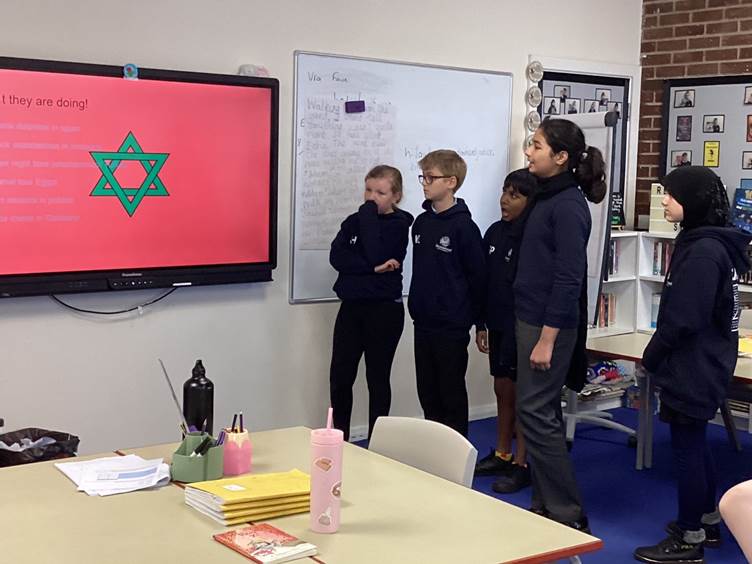 In our English lessons this week we continued to explore the text of Rose Blanche. As we are now into our writing phase, we used role play to develop our ideas, the children developed a plan for their own diary entry, written as Rose. We have now started to write our paragraphs, including all the vocabulary and grammatical skills we have acquired over the last few weeks. Mr Dugdale visited one of our lessons and was very impressed with the standard of the children’s writing.