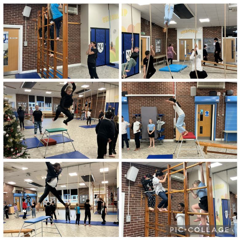 In PE, we got the large apparatus out. The children behaved safely and considerately and showed their gymnastic skills in a variety of ways.