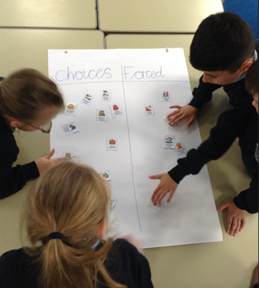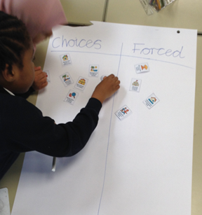 One key activity was sorting cards showing different reasons why people move from one place to another. The children worked in groups to sort these reasons into "forced" and "choices", learning that some people choose to move, while others are forced to leave because of war, danger, or other hardships. This helped us understand why someone might become a refugee or asylum seeker.