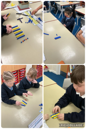 During our Maths lessons, we have been practising our ten times tables. We have also been working on Number and Place Value this week, focusing on exchanging 10 ones for 1 ten and exchanging 10 tens for 1 hundred. We have been exploring this using concrete materials. The class enjoyed working in pairs to consolidate their learning.